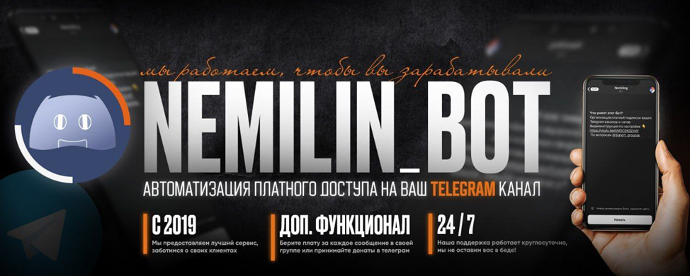 Nemilin bot — это инструмент для системной монетизации контента. Его ищут по разному: Nemilin, Nemiling, бот Nemiling, немилин, немилинг бот. Но суть одна — это полноценный бот платных подписок.